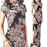 和柄のチャイナドレスです!大胆な両サイドスリットです。 後ろファスナーあり。 サイズ:レディスフリー 着丈約138cmスリット約65cm袖丈約13cm多少の誤差はご了承ください。 素材:ポリエステル 裏地なし 伸縮性あり 後ろファスナーあり 色:黒系 (マネキンサイズ→トップバスト約82cm・ウエスト約58cm・ヒップ約84cm) パソコン環境などにより、色合いなど若干違う場合がございますのでご了承下さい。